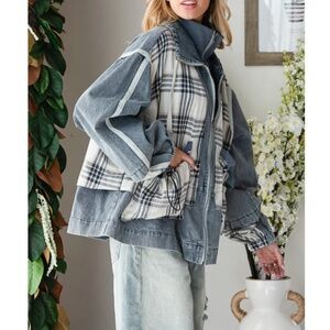 Oli & Hali Medium Wash Plaid Print Zip up Jacket