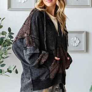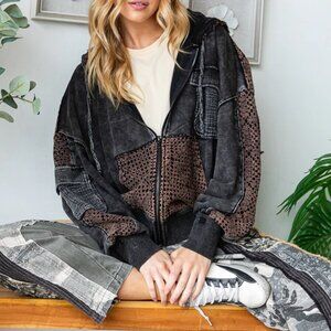 Oli & Hali Washed Back Twist Detail Hooded Zip Up Jacket Size Large