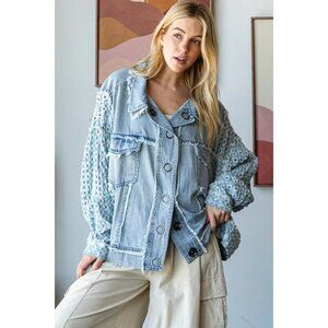 Oli & Hali Washed Contrast Sleeve Denim Button Down Jacket NWOT Size Large