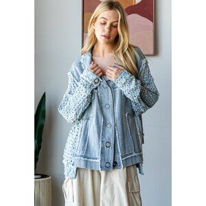 Oli & Hali Washed Contrast Sleeve Denim Button Down Jacket NWOT Size Small