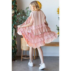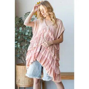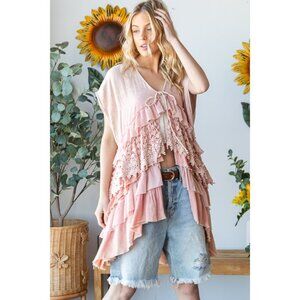 Oli & Hali Washed Lace Tiered Tie Front Detail Sleeveless Top in Pink NEW Size XL