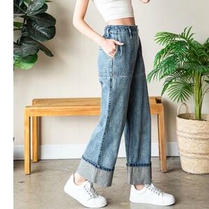 Oli & Hali medium wash stretchy waist cuffed denim jeans