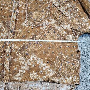 Oli and Hali Distressed Western Oversized Handkerchief Patchwork Button Top - L