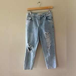 Has a small pinhole by back closure and a little pilling on embroidery shown in photos