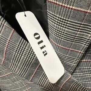 Olia Blazer Size S Black Red Plaid Double Breasted Covered Button Suit Jacket