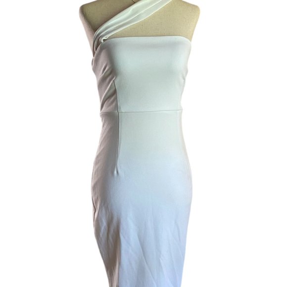 Olia Dress Women Small White One Shoulder Split Thigh Cocktail Bodycon Nightclub