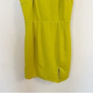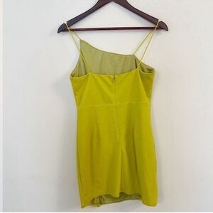 Brand new. Neon yellow/green color. Asymmetrical neckline and straps. Thin spaghetti straps. Back zipper closure. Front small slit. Mini length. Lined.