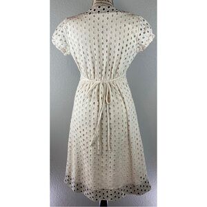 Olian Clothing Women's Cream 100% Cotyon Eyelet Dress with Black Trim Small
