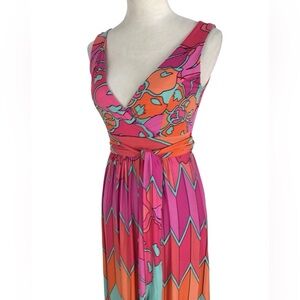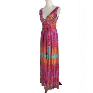 Olian Geometric Colorful Pattern Sleeveless V Neck Maxi Dress Size Medium