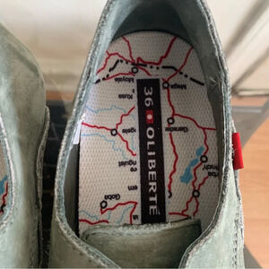 Oliberte Minsha Olive Green Nubuck Leather Oxford Lace up Loafers Size 36