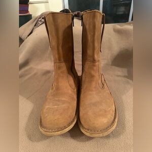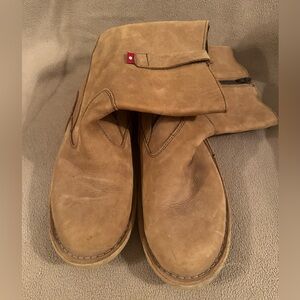 Oliberte Yabela suede tan leather boots. Handmade in Africa, and in very good condition. Maybe worn 10x. EU 39. Super comfortable and a wide toe box. Side zip. Hits mid calf or just below.