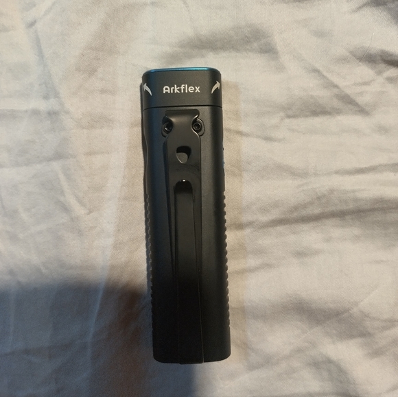 I have for sale an Olight Arkflex flashlight. This light has been discontinued by Olight. It has a 90 degree swivel head and a magnetic bottom. It charges with Olight's magnetic charger which is also included. It's in like new condition, has just been sitting in a dresser drawer.