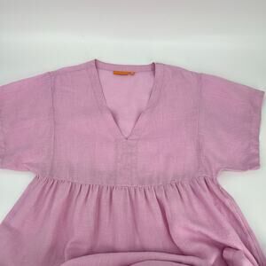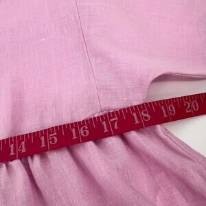 Oliphant 100% Linen Shift Dress Womens Medium Pink V Neck Midi Lagenlook Cottage