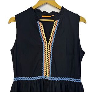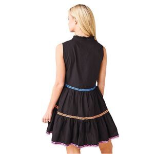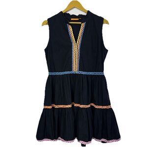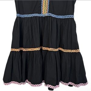 Oliphant Cabo Yoke Tiered Mini Dress Size M Black Sleeveless Ruffle Cotton
