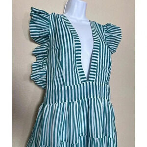Oliphant Cross Back Mini Playa Green Dress Womens Size M Sleeveless Striped NWT