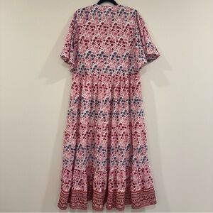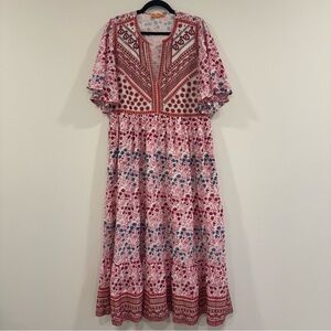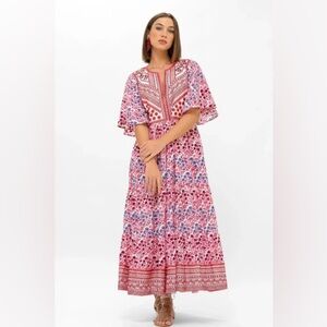Embrace a breezy, casual style with this Oliphant sundress, featuring a ruffled, tiered design in soft pink and white hues. The short flutter sleeves and plunge neckline add a touch of elegance, making it perfect for resort wear. Crafted for comfort, this maxi dress offers a relaxed fit ideal for warm weather.