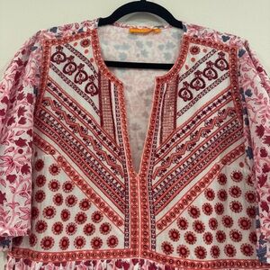 Oliphant Flirty Mendoza Coral Sequins Tiered Maxi Sundress L