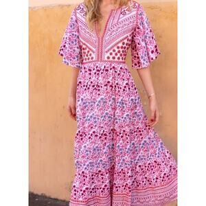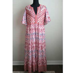 Oliphant Flirty V Neck Maxi Mendoza Coral Ladies Dress Size Medium