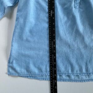 Oliphant Mandarin Collar Popover Blouse Sz L Blue Contemporary Classic Nomad