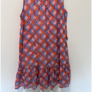 Oliphant Orange Pink Blue Diamond Sleeveless Ruffle Hem Dress Size M