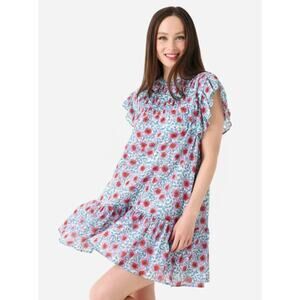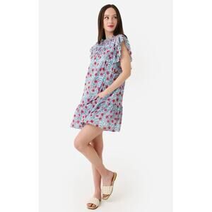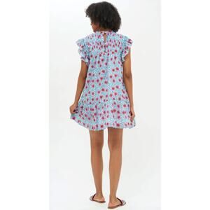 Oliphant Pintuck Flirty Short Dress Flutter Sleeve Turquoise Jardin Tuckernuck