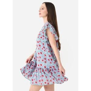 Oliphant Pintuck Flirty Short Dress Flutter Sleeve Turquoise Jardin