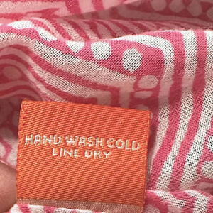 Oliphant Pintuck Tunic Blouse Womens L Pink & White Geometric Pattern 3/4 Sleeve