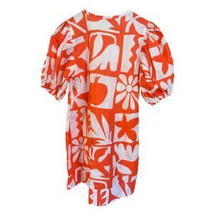 Oliphant RARE Puff Sleeve Crew Neck Mini Dress Orange Twiggy Print XXS Oversized