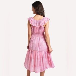Oliphant Ruffle Neck Midi Dress pebble lilac coral print pink flounce