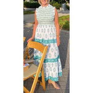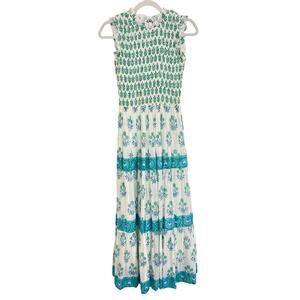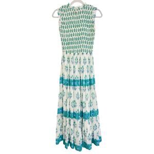 Oliphant Smocked Sleeveless Maxi Midi Dress Indica Blue Tuckernuck Block Print