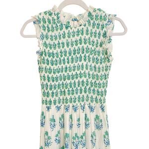 Oliphant's vacation-ready pieces are characterized by breezy silhouettes and vibrant colors. Made from lightweight cotton voile with a loose and breezy skirt, this sleeveless dress is a masterclass in warm-weather dressing. The ruffled round neckline gives a special touch to this romantic maxi, while a smocked bodice and Indica blue print and contrasting borders complete the fresh silhouette.