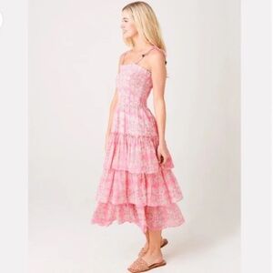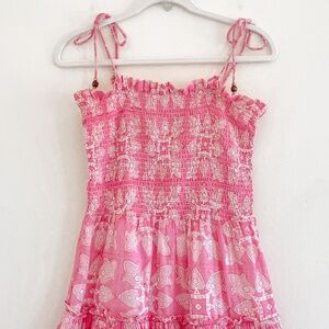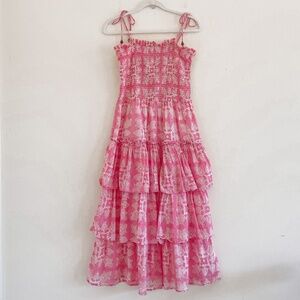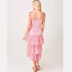 Oliphant Tie Strap Smocked Midi Dress in Pink M