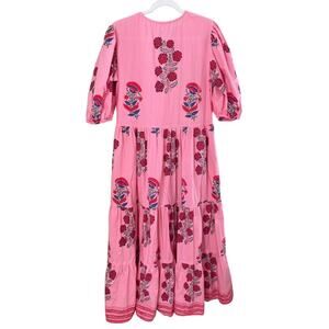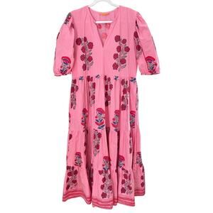 Oliphant Tuckernuck Boca Pink Puff Sleeve Maxi Midi Cotton Block Print Dress