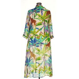 Oliphant Tuckernuck Tropical Giraffe Button Down Maxi Dress Cotton Silk Size 2X