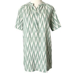 Oliphant V-Neck Mini Pocket Dress Sage Green Abstract Print Cotton Size XS