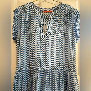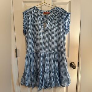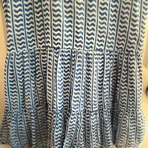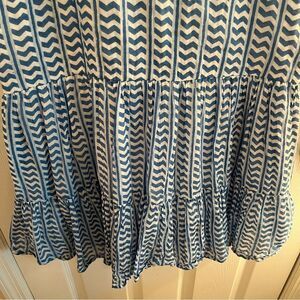 Stylish mini dress with chevron pattern. Features cap sleeves and a tiered skirt. Ideal for casual wear.