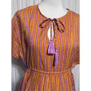 Oliphant Short Sleeve Tasseled Striped Dress Size XS