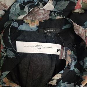 New with Tags. Beautiful flowing floral dress with balloon sleeves. Button front and cinch tie at waist. Oversized and could easily fit a medium