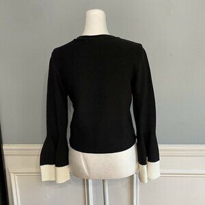 Olivaceous Bell Sleeve Top Sweater Size Medium Black White Pullover