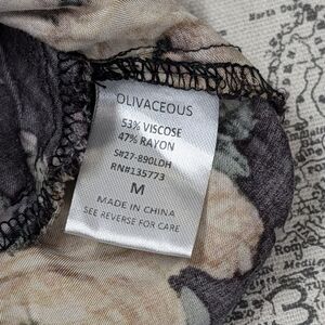 Olivaceous Black Tunic Blouse With Apricot & Pink Hued Floral Print Size Medium