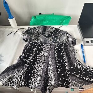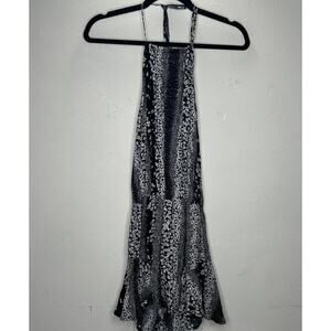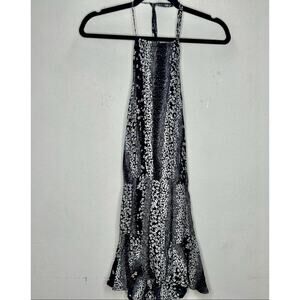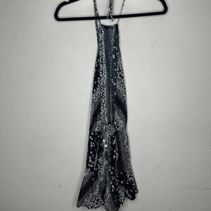 Olivaceous Black and White Floral Halter Tie Neck Open Back Flowy Romper Medium