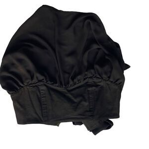 Olivaceous Black Bandeau Top with Flowy Black Sheer overlay.