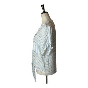Olivaceous Blue White and Gray Striped Tie Front Button Down Blouse M