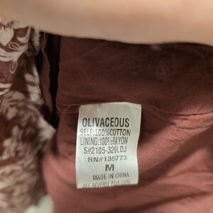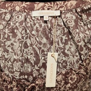 Olivaceous Boho Floral Short Puff Sleeve Mini Baby Doll Dress Maroon Size Medium