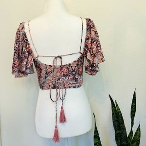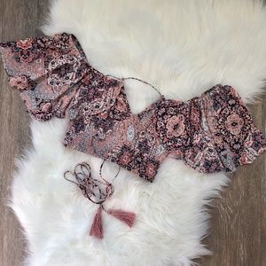 Olivaceous Boho Off The Shoulder Crop Top | Size S