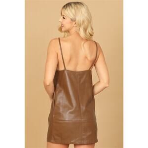 Olivaceous Brown Vegan Leather Mini Dress L