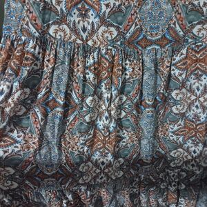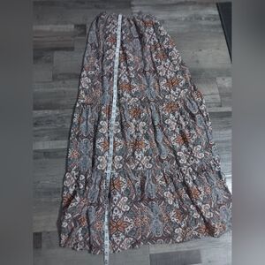 elastic at the waist,Embrace effortless style with this Olivaceous maxi skirt, featuring a tiered design in earthy brown and gray tones. Perfect for casual outings or resort wear, this skirt offers a relaxed yet chic look. Its flowing silhouette adds a touch of elegance to any ensemble.