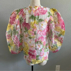 Olivaceous Bubble Sleeve Floral Top Size Medium NWT