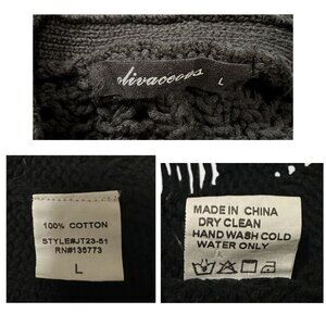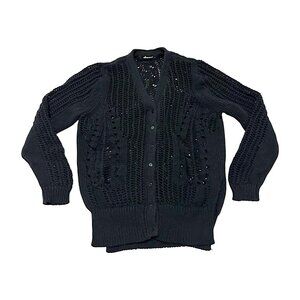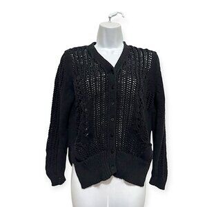 Olivaceous Cotton Cardigan with Open weave, Black, Size L