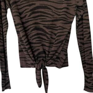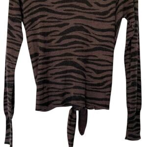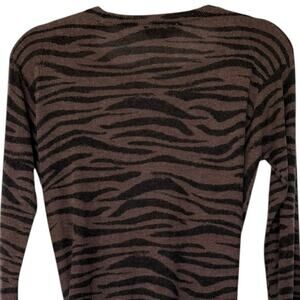 Olivaceous Crew Neck Long Sleeve Shirt Zebra Print Size Medium Brown & Black